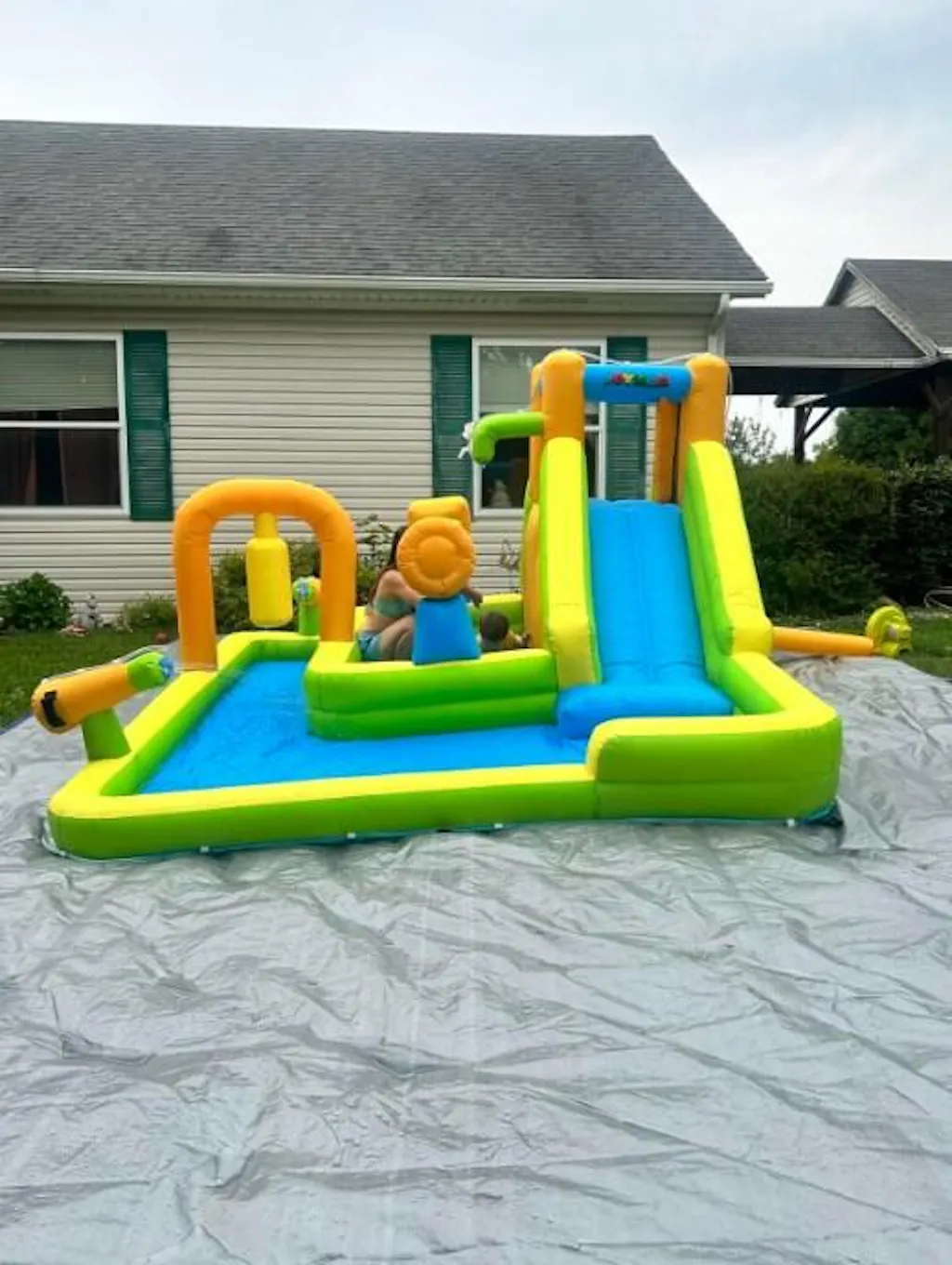 More than Slide:Features water slide, deep swimming pool, shower spray, sticky ball darts, challenge climbing wall, 2 water cannons, obstacle crossing, and big splashing pool. The abundance of ways to play not only keeps kids cool and releases all that energy in the summer, but also allows them to get away from electronic devices, increase socialization with friends and accompany families.